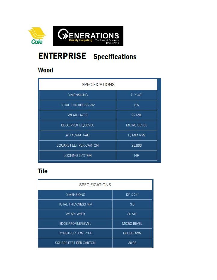 Generations Enterprise Glue Down 30mil Specifications